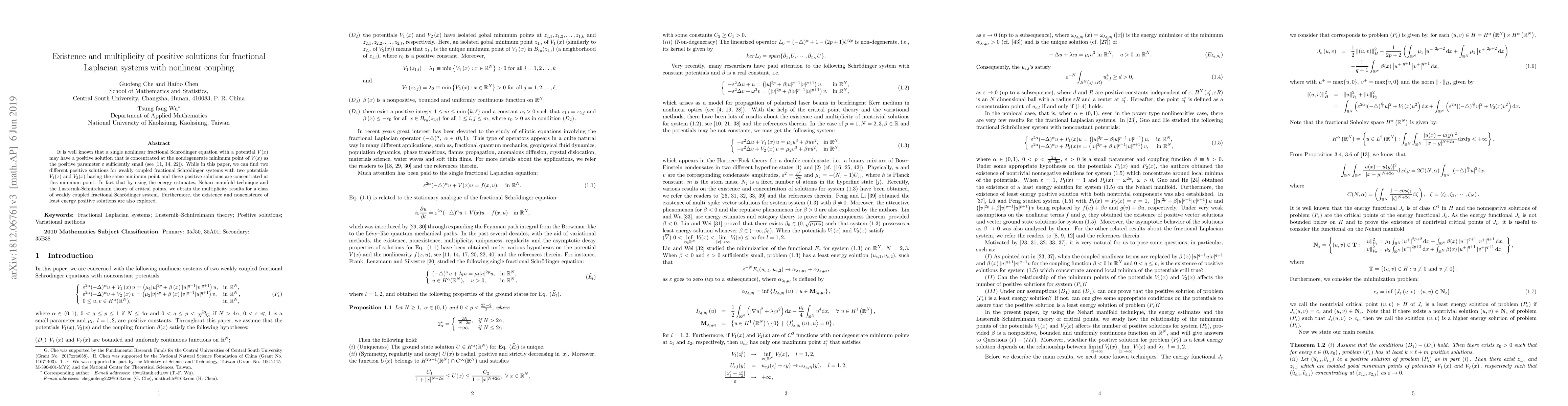This paper investigates the existence and multiplicity of positive solutions for weakly coupled fractional Schrödinger systems. Using energy estimates, Nehari manifold techniques, and Lusternik-Schnirelmann theory, it demonstrates the existence of two distinct positive solutions for systems with small coupling parameters and potentials sharing a common minimum point.