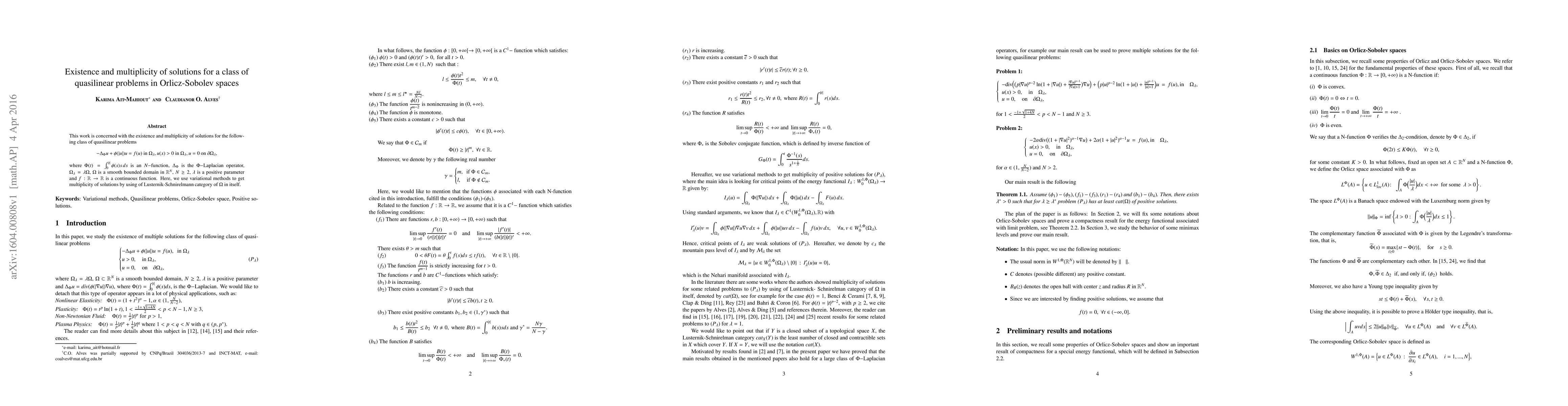 This paper investigates the existence and multiplicity of solutions for quasilinear problems in Orlicz-Sobolev spaces using variational methods, focusing on the $\Phi$-Laplacian operator and employing the Lusternik-Schnirelmann category for solution multiplicity.
