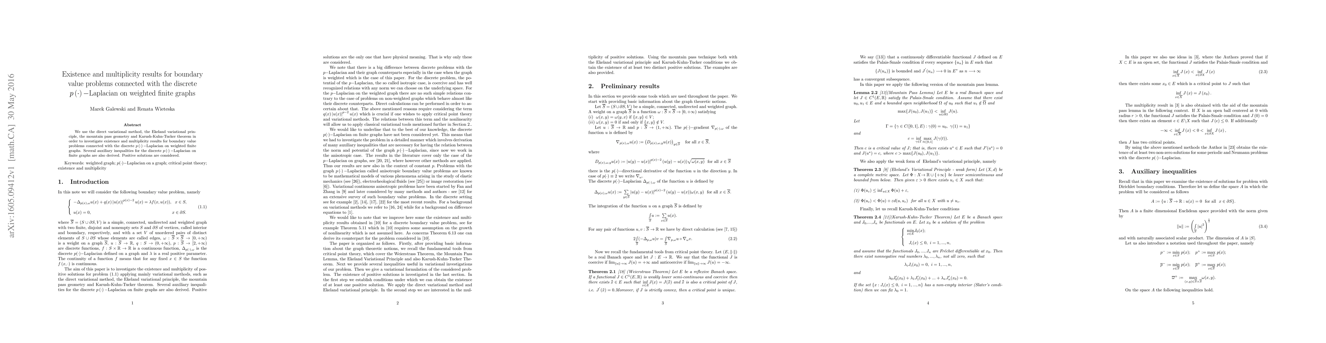 This paper investigates existence and multiplicity results for boundary value problems associated with the discrete p(.)-Laplacian on weighted finite graphs using variational methods, including the Ekeland principle and mountain pass geometry. Auxiliary inequalities for the discrete p(.)-Laplacian are derived, focusing on the existence of positive solutions.