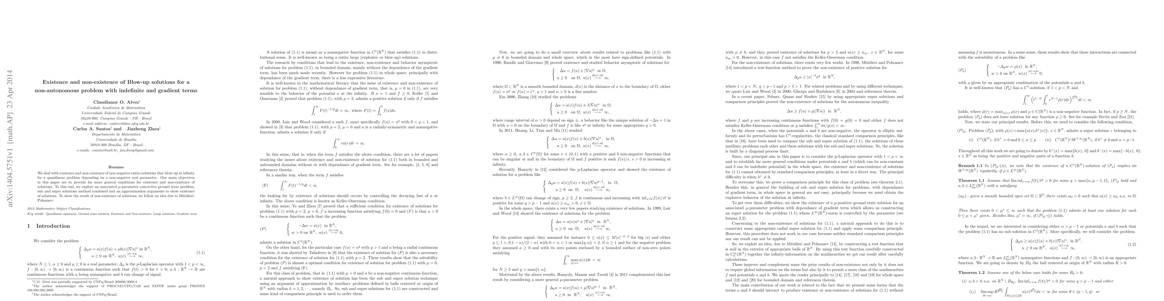 We deal with existence and non-existence of non-negative entire solutions that blow-up at infinity for a quasilinear problem depending on a non-negative real parameter. Our main objectives in this paper are to provide far more general conditions for existence and non-existence of solutions. To this end, we explore an associated $\mu$-parameter convective ground state problem, sub and super solutions method combined and an approximation arguments to show existence of solutions. To show the result of non-existence of solutions, we follow an idea due to Mitidieri-Pohozaev.