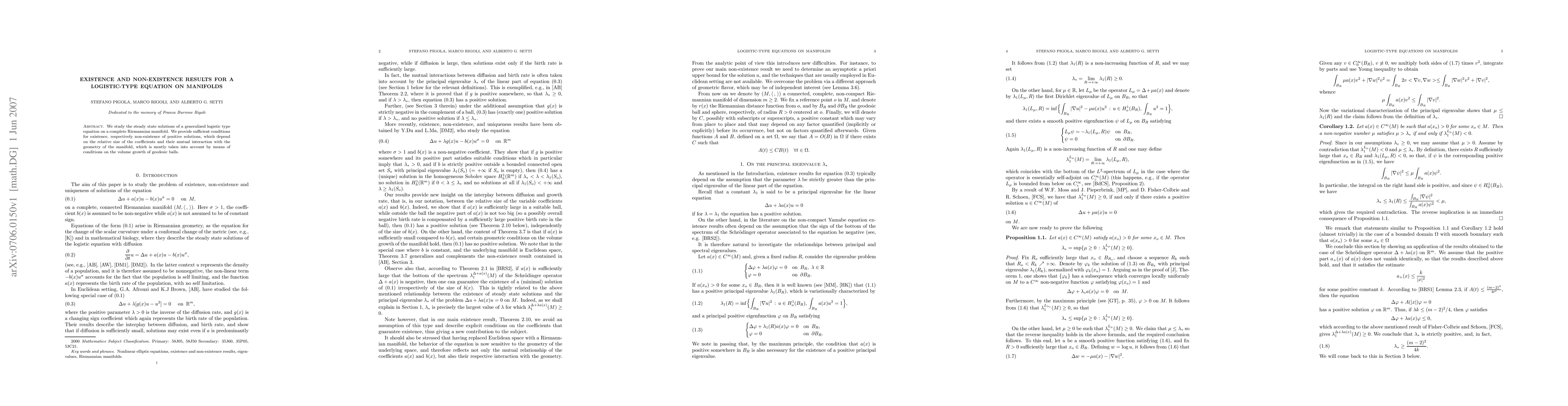 We study the steady state solutions of a generalized logistic type equation on a complete Riemannian manifold. We provide sufficient conditions for existence, respectively non-existence of positive solutions, which depend on the relative size of the coefficients and their mutual interaction with the geometry of the manifold, which is mostly taken into account by means of conditions on the volume growth of geodesic balls.