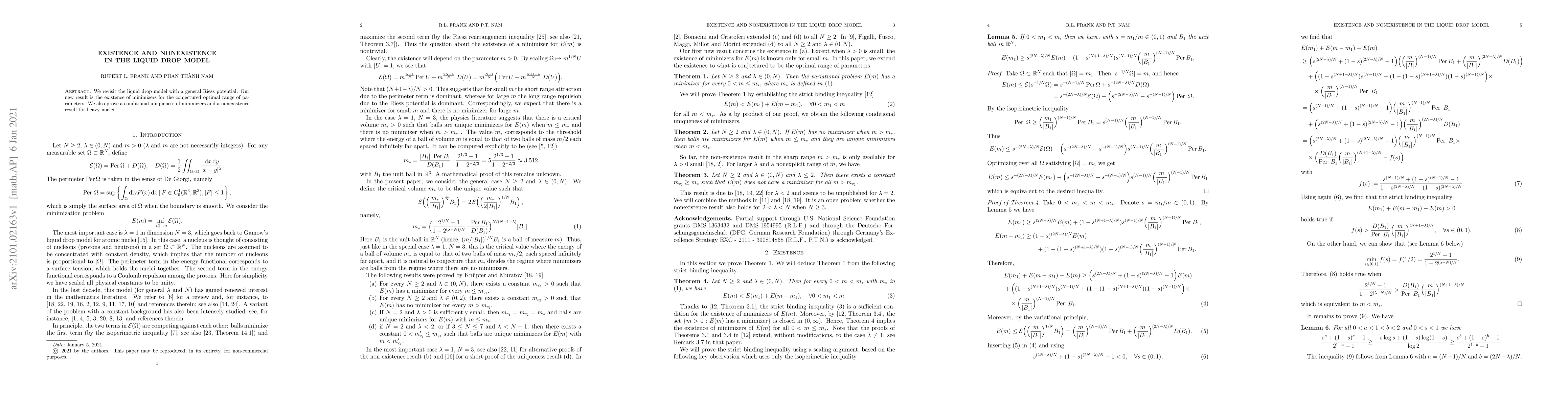 A new study confirms the existence of minimizers for a specific model in nuclear physics, while also proving uniqueness under certain conditions and showing nonexistence for heavy nuclei.