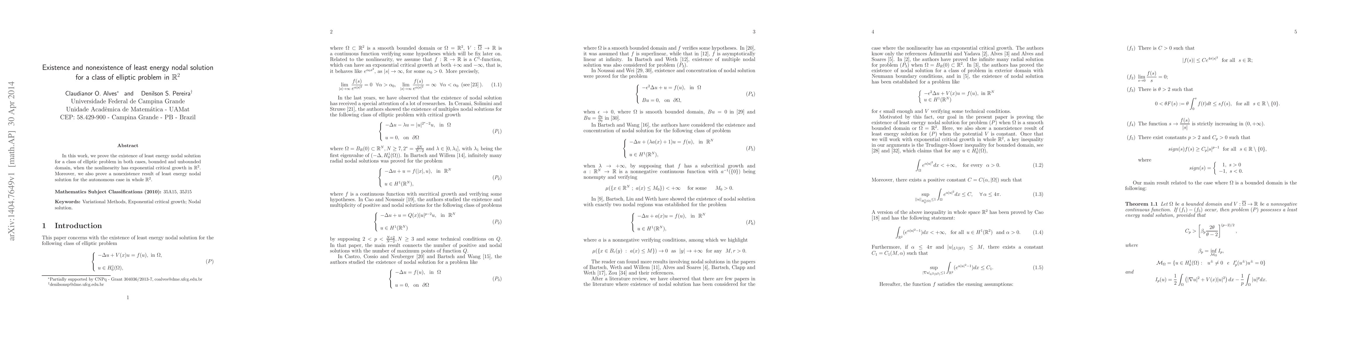 Summary: This paper proves the existence of least energy nodal solutions for a class of elliptic problems in $\mathbb{R}^{2}$ under exponential critical growth, applicable to both bounded and unbounded domains. It also demonstrates the nonexistence of such solutions for the autonomous case in $\mathbb{R}^{2}$.