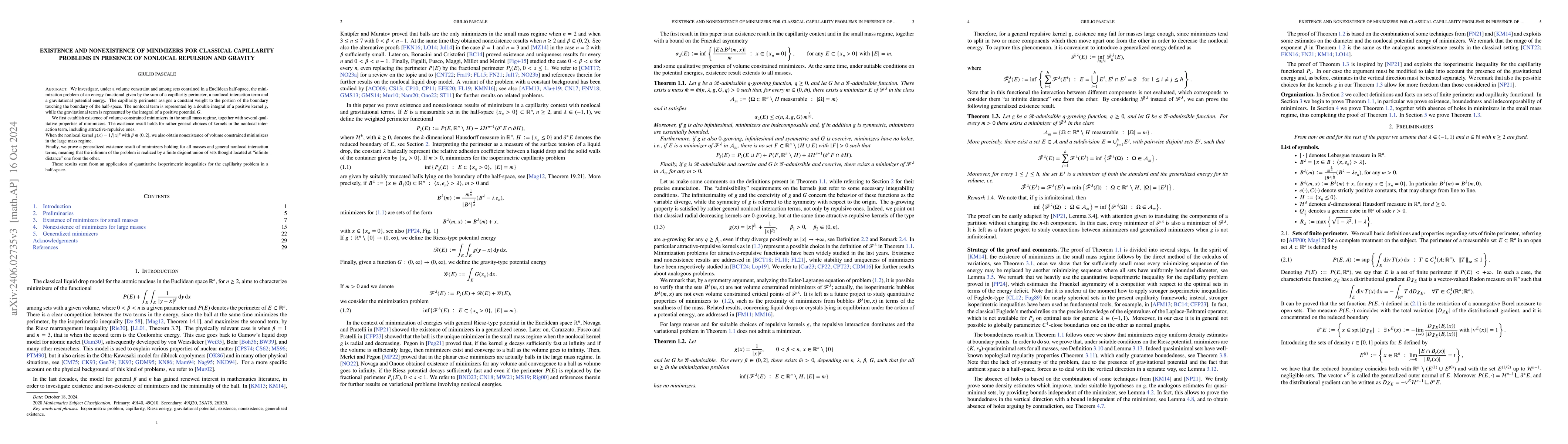 This paper investigates the existence and nonexistence of minimizers for a volume-constrained energy functional involving capillarity, nonlocal repulsion, and gravity in a Euclidean half-space. It establishes existence in the small mass regime and nonexistence in the large mass regime for specific nonlocal kernels, while proving generalized existence for all masses.