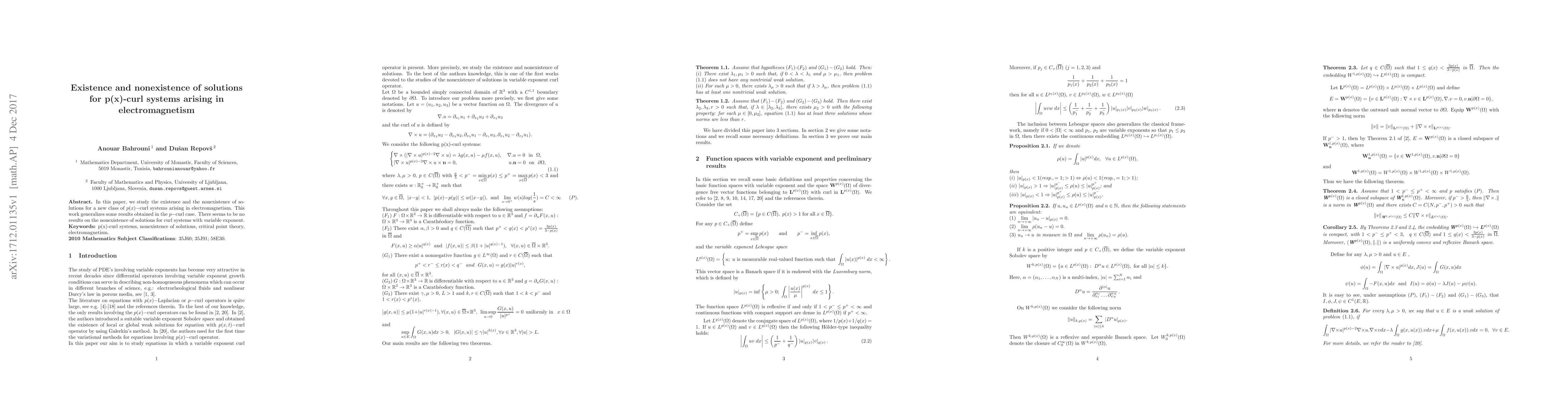 This paper investigates the existence and nonexistence of solutions for $p(x)$-curl systems in electromagnetism, generalizing previous $p$-curl results and addressing the lack of nonexistence studies for variable exponent curl systems.