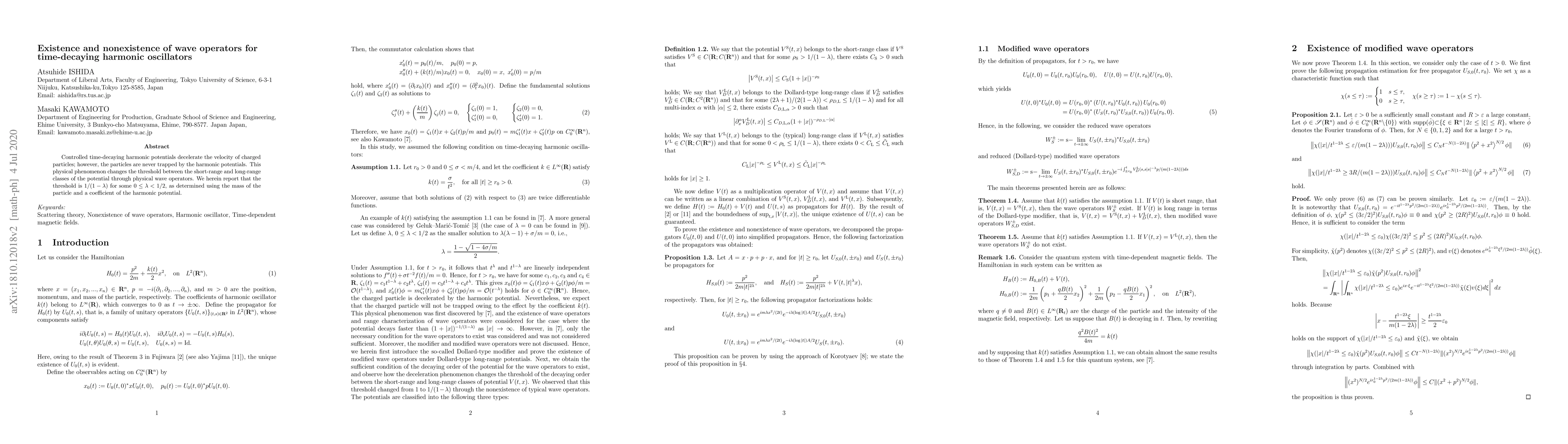 Controlled time-decaying harmonic potentials decelerate the velocity of the charged particle but the particle never be trapped by this harmonic potentials. This physical phenomena changes threshold between the short range class of potential and long-range class of potential in the sense of the existence of physical wave operators. In this paper, we reveal such a threshold is $1/(1-\lambda)$ for some $0\leq \lambda<1/2$ , which is determined by the mass of the particle and a coefficient of harmonic potential.