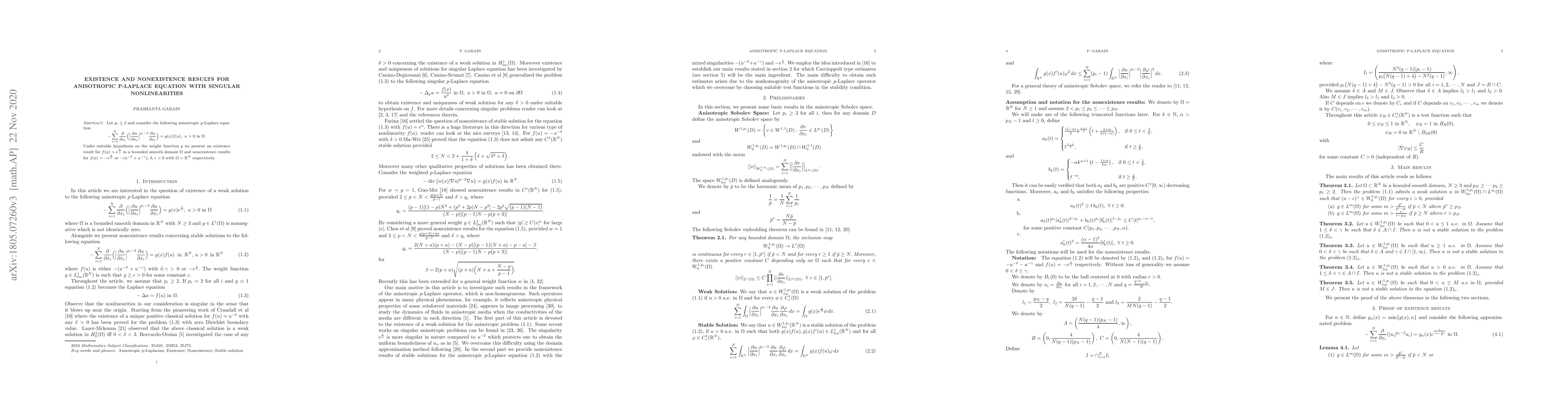 Let $p_i\geq 2$ and consider the following anisotropic $p$-Laplace equation $$ -\sum_{i=1}^{N}\frac{\partial}{\partial x_i}\Big(\Big|\frac{\partial u}{\partial x_i}\Big|^{p_i-2}\frac{\partial u}{\partial x_i}\Big)=g(x)f(u),\,\,u>0\text{ in }\Omega. $$ Under suitable hypothesis on the weight function $g$ we present an existence result for $f(u)=e^\frac{1}{u}$ in a bounded smooth domain $\Omega$ and nonexistence results for $f(u)=-e^\frac{1}{u}$ or $-(u^{-\delta}+u^{-\gamma}),$ $\delta,\gamma>0$ with $\Omega=\mathbb{R}^N$ respectively.