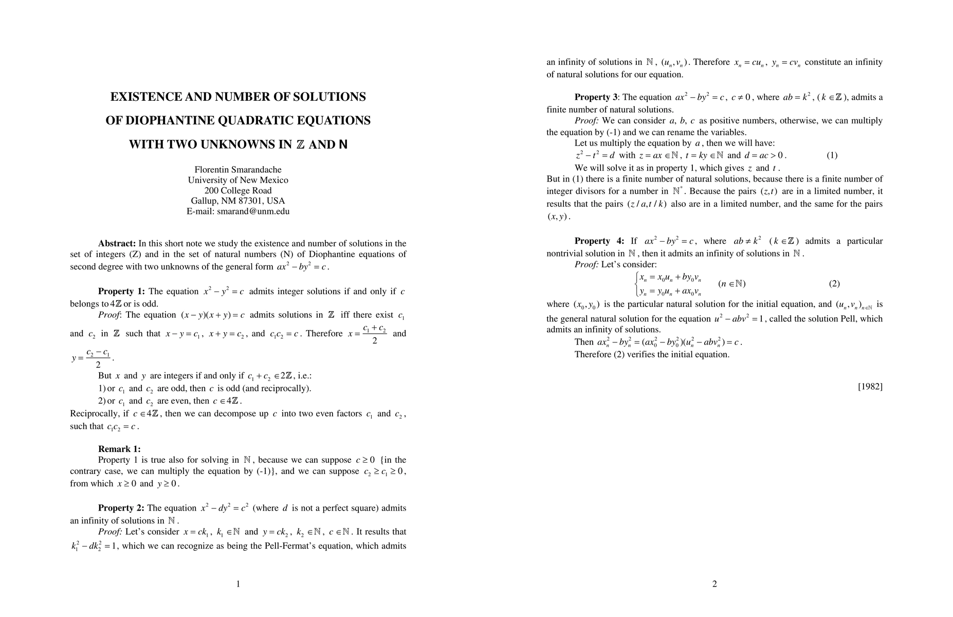 This paper explores solutions to Diophantine quadratic equations with two unknowns in integers and natural numbers, finding conditions for existence and counting the number of solutions.