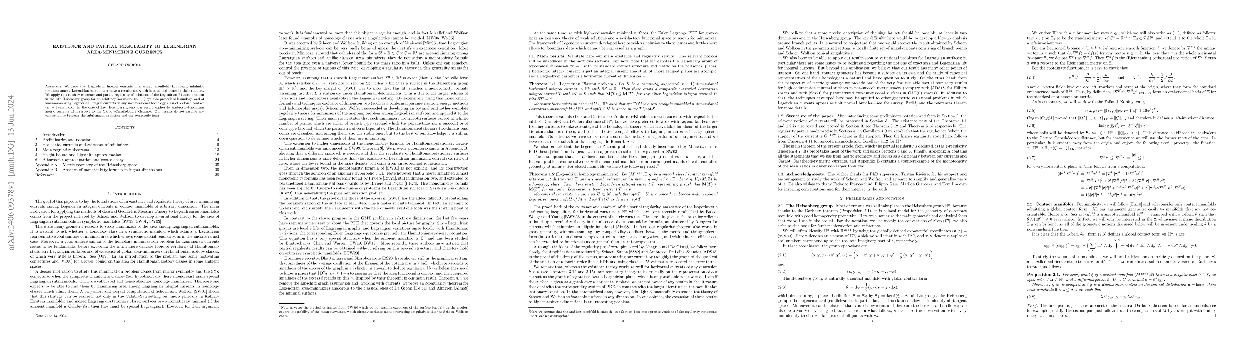 This paper demonstrates the existence and partial regularity of Legendrian area-minimizing currents in contact manifolds, showing their regular set is open and dense. It applies these findings to solve the Legendrian Plateau problem in the Heisenberg group and to mass-minimizing currents in closed contact manifolds, without requiring compatibility between subriemannian and symplectic structures.