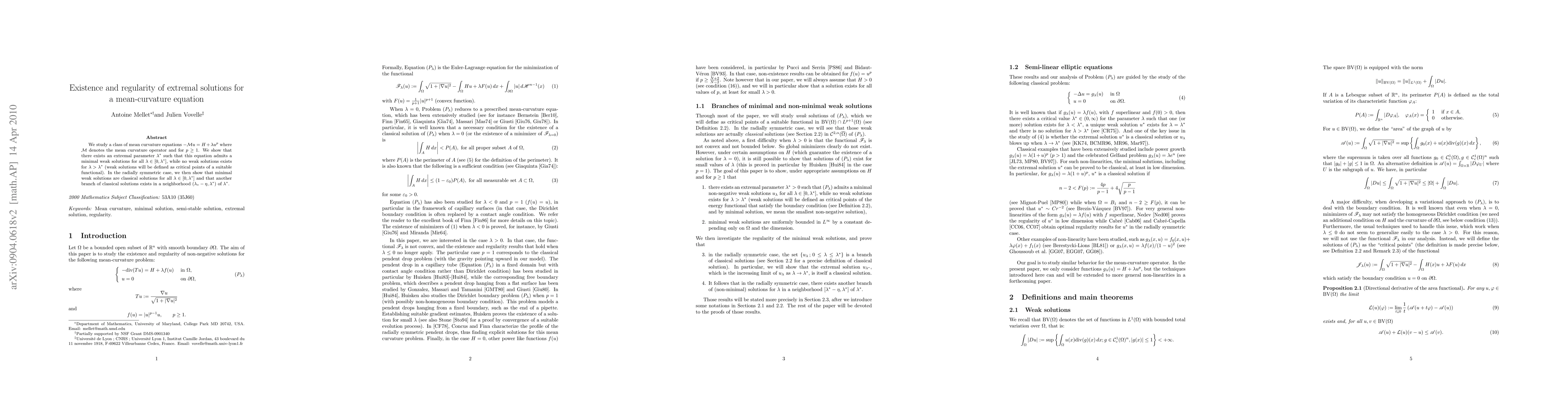 We study a class of mean curvature equations $-\mathcal Mu=H+\lambda u^p$ where $\mathcal M$ denotes the mean curvature operator and for $p\geq 1$. We show that there exists an extremal parameter $\lambda^*$ such that this equation admits a minimal weak solutions for all $\lambda \in [0,\lambda^*]$, while no weak solutions exists for $\lambda >\lambda^*$ (weak solutions will be defined as critical points of a suitable functional). In the radially symmetric case, we then show that minimal weak solutions are classical solutions for all $\lambda\in [0,\lambda^*]$ and that another branch of classical solutions exists in a neighborhood $(\lambda_*-\eta,\lambda^*)$ of $\lambda^*$.
