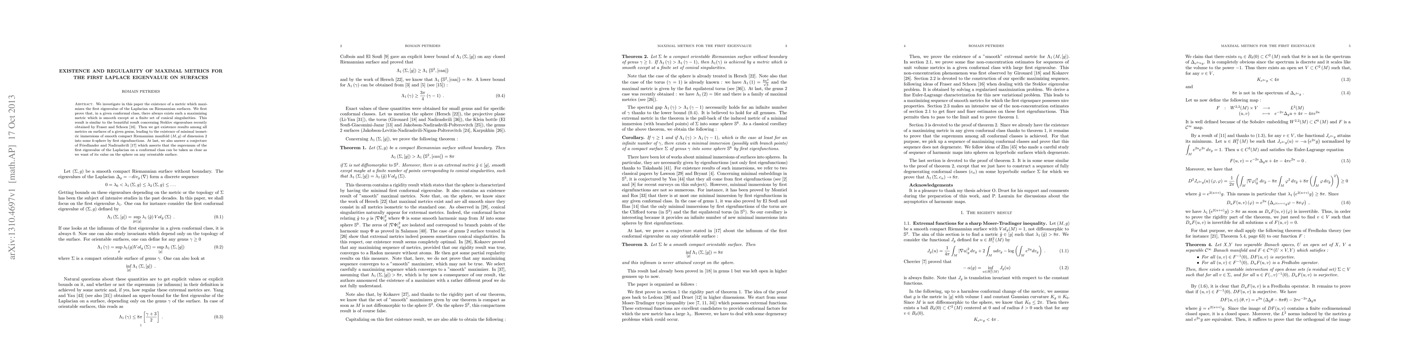 This paper proves the existence of a smooth maximal metric within a conformal class that maximizes the first Laplace eigenvalue on Riemannian surfaces, with singularities at a finite set. It also establishes existence results among all metrics of a given genus and confirms a conjecture regarding the supremum of the first eigenvalue.