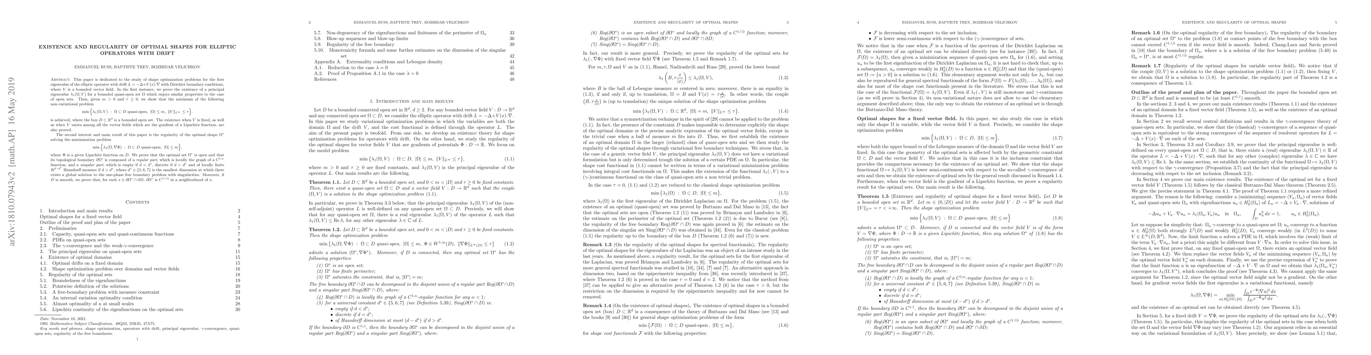 The paper proves the existence of optimal shapes for elliptic operators with drift and shows that these shapes have a specific regularity, capturing local smoothness and singularities in their boundary.