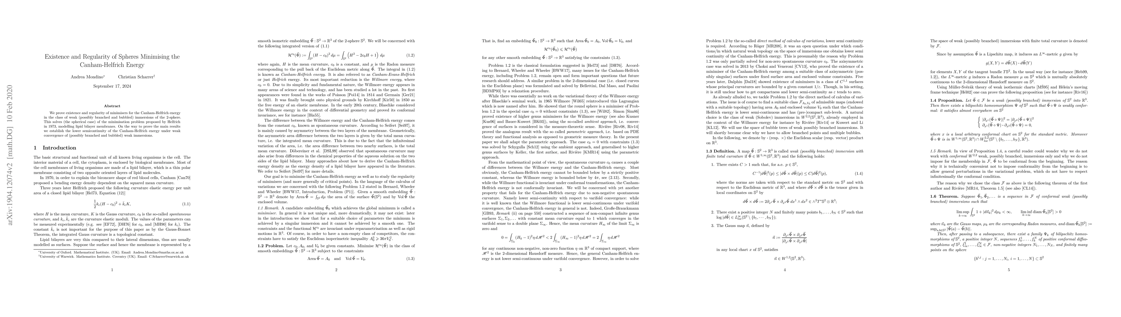 This paper proves the existence and regularity of spheres that minimize the Canham-Helfrich energy among weak immersions, solving the spherical case of Helfrich's 1973 minimisation problem for lipid bilayer membranes. It also establishes the lower semicontinuity of the Canham-Helfrich energy under weak convergence of weak immersions.