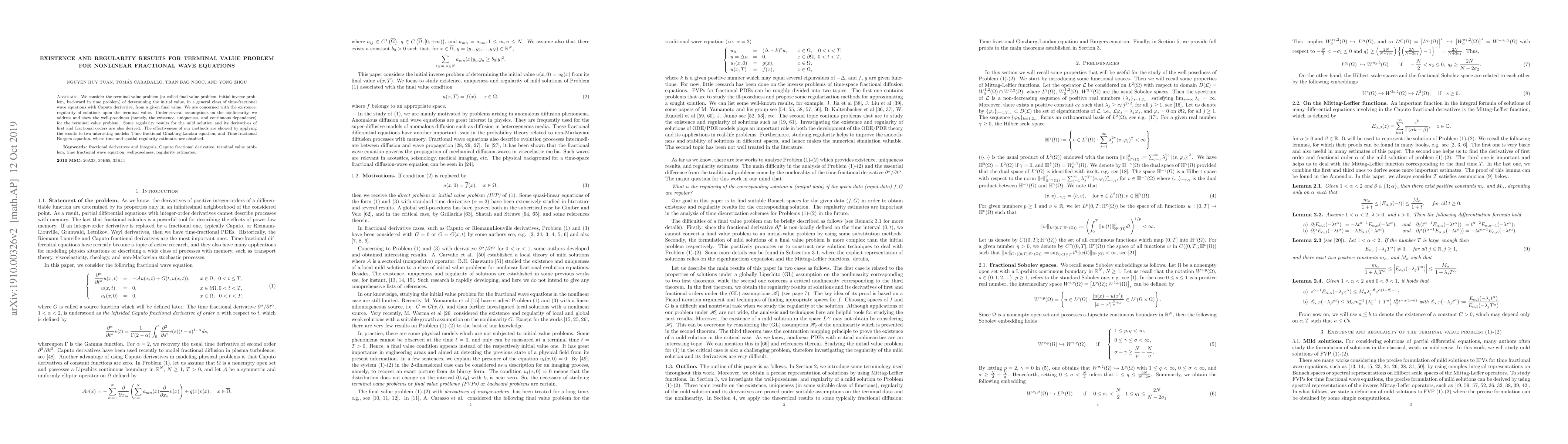 This paper investigates the existence and regularity of solutions for the terminal value problem of nonlinear fractional wave equations with Caputo derivatives. It establishes well-posedness under certain nonlinear assumptions and derives regularity results for the mild solution and its derivatives, demonstrating the methods' effectiveness through applications to the time fractional Ginzburg-Landau and Burgers equations.