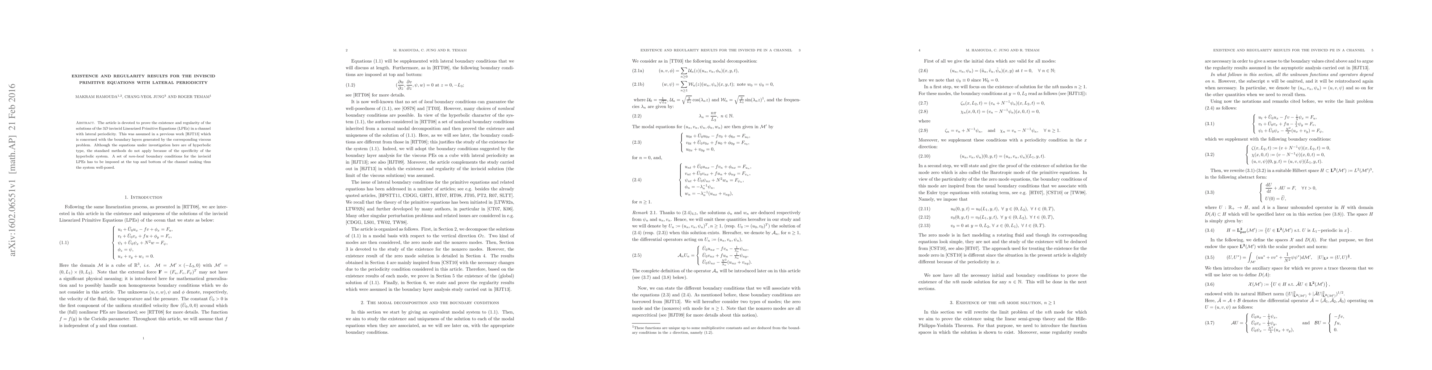 This paper proves the existence and regularity of solutions for the 3D inviscid Linearized Primitive Equations in a channel with lateral periodicity, addressing the unique challenges posed by the hyperbolic nature of the equations and the necessity of non-local boundary conditions. The study builds on previous work examining boundary layers from the corresponding viscous problem.