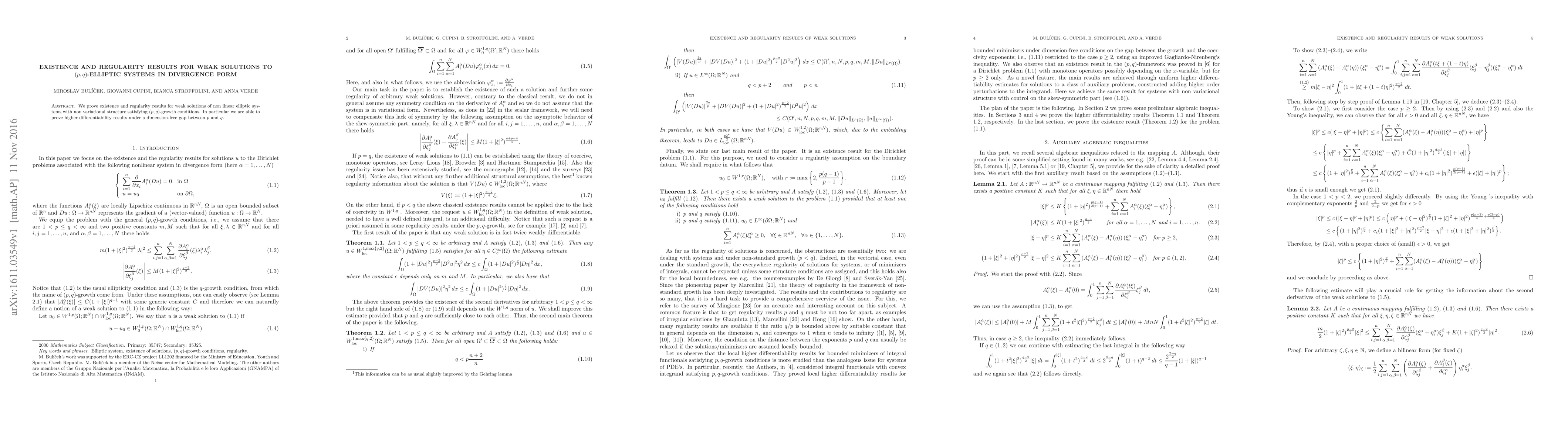 This paper establishes existence and regularity for weak solutions of nonlinear $(p,q)$-elliptic systems in divergence form, demonstrating higher differentiability under a dimension-independent gap between $p$ and $q$. The results are shown to hold for systems with $(p,q)$-growth conditions.