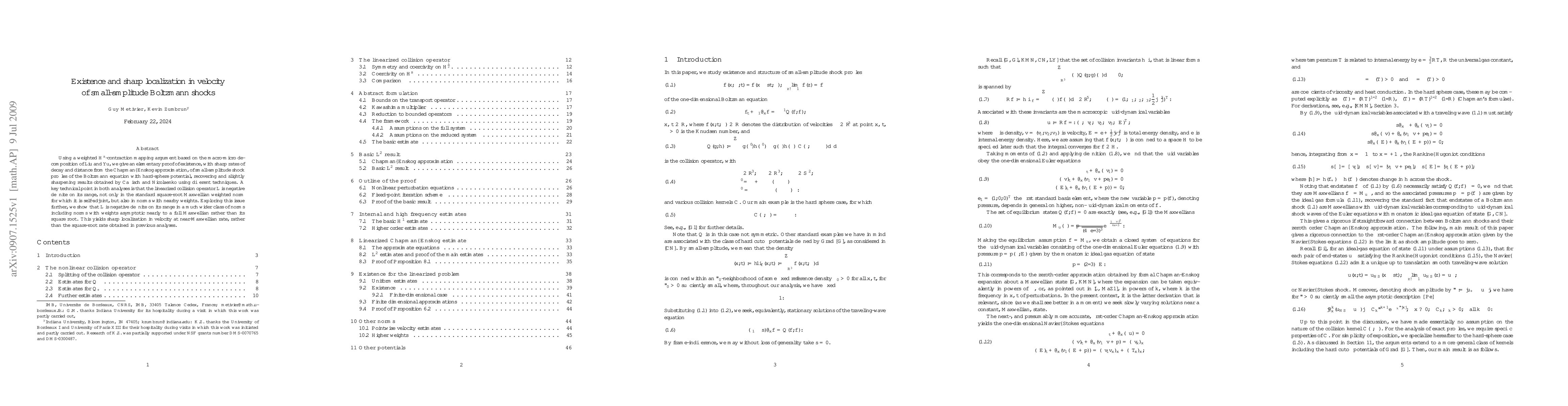 Researchers prove the existence of small-amplitude shock profiles in the Boltzmann equation with hard-sphere potential, showing sharp rates of decay and distance from the Chapman-Enskog approximation. The analysis also reveals negative definiteness of the linearized collision operator in a wider class of norms, leading to near-Maxwellian rate localization in velocity.