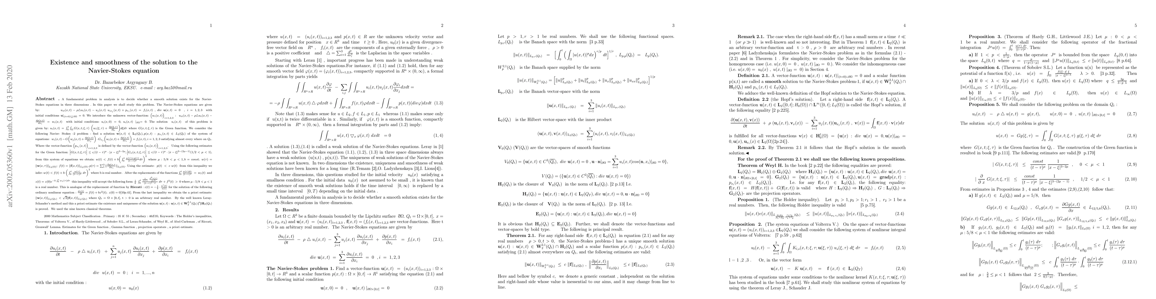 This paper investigates the existence and smoothness of solutions for the Navier-Stokes equations in three dimensions. By introducing a new vector function and utilizing Green function estimates, the authors derive a system of equations (N-Stokes-2 problem). They then prove, using the Leray-Schauder method and an a priori estimate, that a solution exists and is unique for this problem, addressing a significant challenge in fluid dynamics.