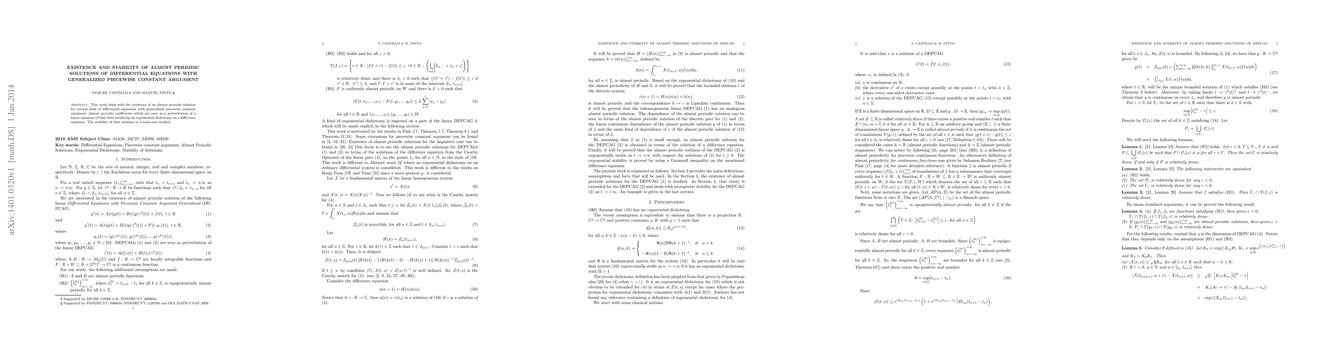 This research explores the existence and stability of almost periodic solutions in differential equations with generalized piecewise constant arguments, focusing on perturbations of linear equations exhibiting exponential dichotomy. Stability of these solutions along a semi-axis is also investigated.
