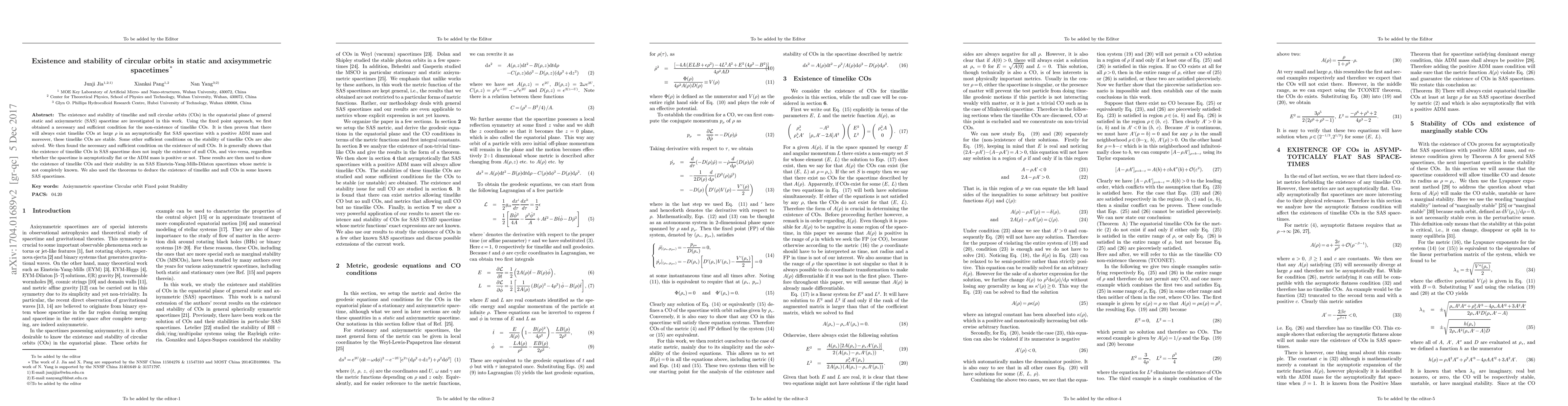 The existence and stability of timelike and null circular orbits (COs) in the equatorial plane of general static and axisymmetric (SAS) spacetime are investigated in this work. Using the fixed point approach, we first obtained a necessary and sufficient condition for the non-existence of timelike COs. It is then proven that there will always exist timelike COs at large $\rho$ in an asymptotically flat SAS spacetime with a positive ADM mass and moreover, these timelike COs are stable. Some other sufficient conditions on the stability of timelike COs are also solved. We then found the necessary and sufficient condition on the existence of null COs. It is generally shown that the existence of timelike COs in SAS spacetime does not imply the existence of null COs, and vice-versa, regardless whether the spacetime is asymptotically flat or the ADM mass is positive or not. These results are then used to show the existence of timelike COs and their stability in an SAS Einstein-Yang-Mills-Dilaton spacetimes whose metric is not completely known. We also used the theorems to deduce the existence of timelike and null COs in some known SAS spacetimes.