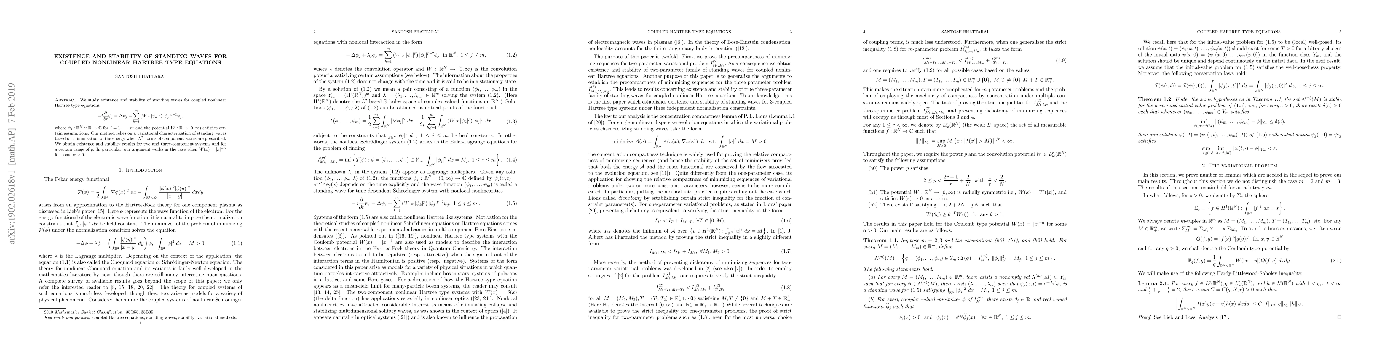 This paper investigates the existence and stability of standing waves for coupled nonlinear Hartree type equations, employing variational methods to minimize the energy under prescribed $L^2$ norms. It establishes results for systems with two or three components and for specific ranges of the nonlinearity parameter $p$, including cases where the potential $W$ is radially symmetric.