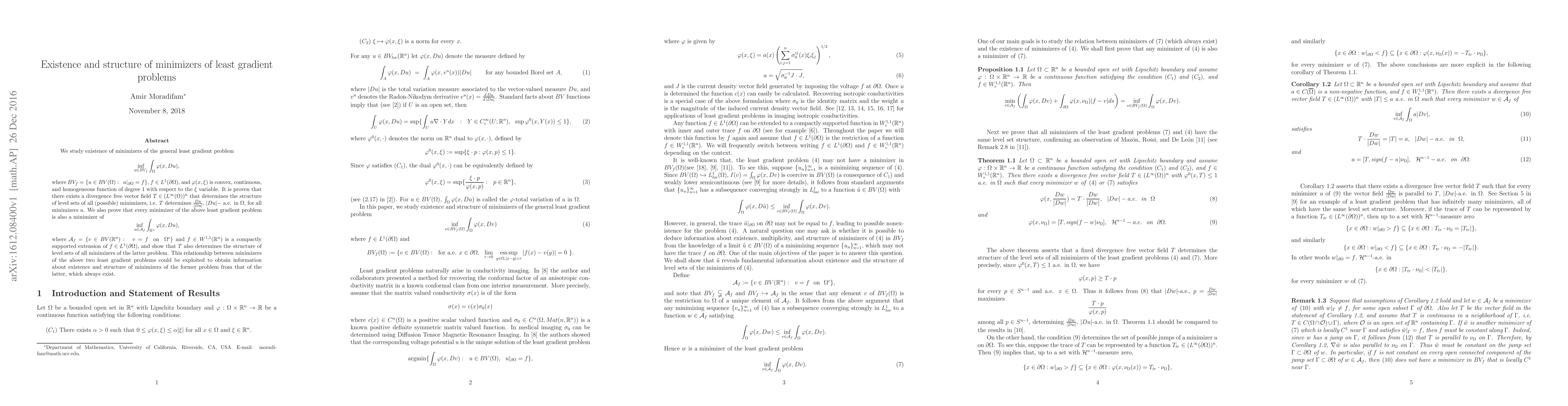 This research paper investigates the existence and structure of minimizers for a general least gradient problem, showing that a specific vector field determines the level sets of all possible minimizers, and that these minimizers also satisfy another related least gradient problem.