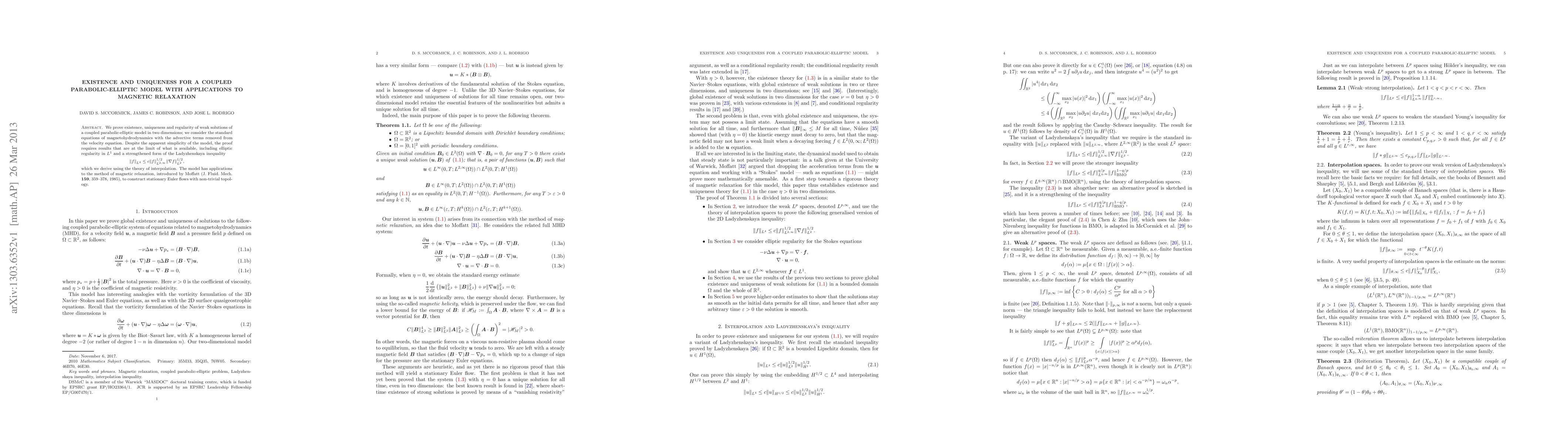 We prove existence, uniqueness and regularity of weak solutions of a coupled parabolic-elliptic model in two dimensions; we consider the standard equations of magnetohydrodynamics with the advective terms removed from the velocity equation. Despite the apparent simplicity of the model, the proof requires results that are at the limit of what is available, including elliptic regularity in $L^{1}$ and a strengthened form of the Ladyzhenskaya inequality \[ \| f \|_{L^{4}} \leq c \| f \|_{L^{2,\infty}}^{1/2} \| \nabla f \|_{L^{2}}^{1/2}, \] which we derive using the theory of interpolation. The model has applications to the method of magnetic relaxation, introduced by Moffatt (J. Fluid. Mech. 159, 359-378, 1985), to construct stationary Euler flows with non-trivial topology.