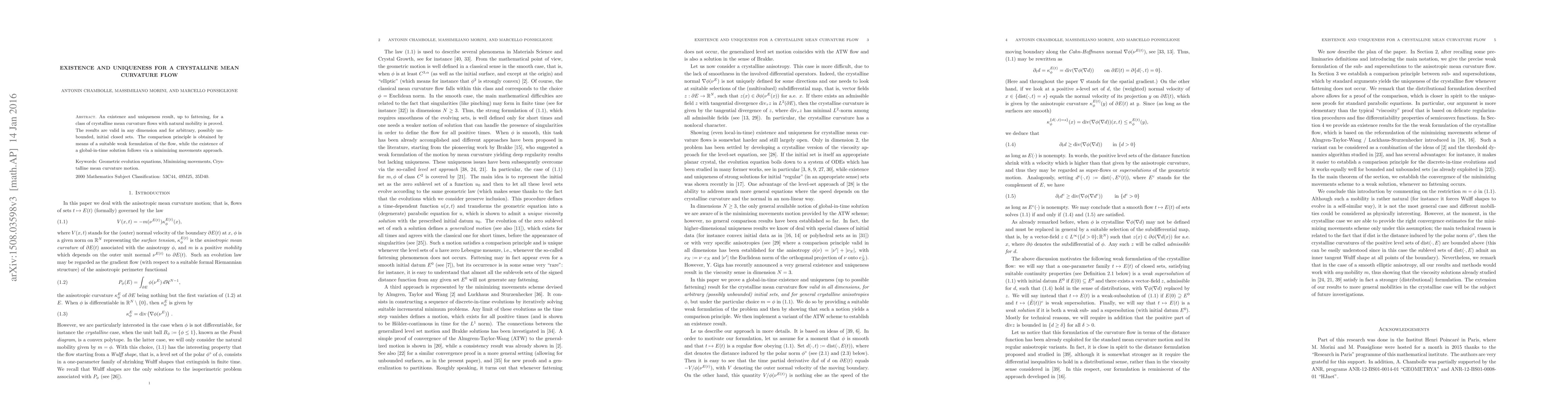 This paper proves existence and uniqueness for a class of crystalline mean curvature flows with natural mobility, valid in any dimension and for arbitrary initial closed sets. The results are established using a weak formulation and a minimizing movements approach.