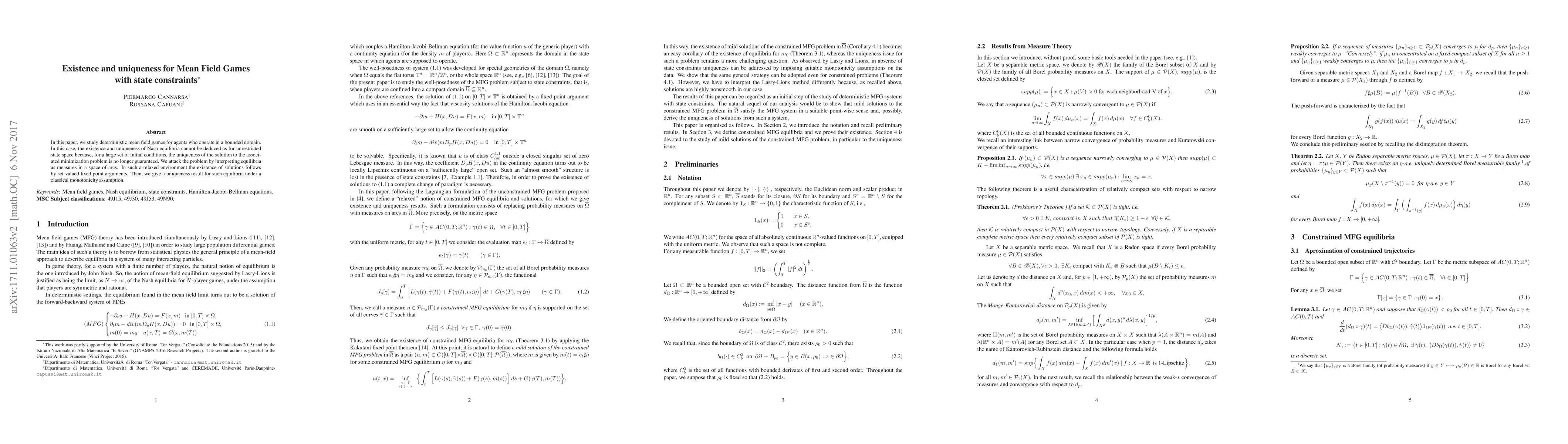 This paper investigates existence and uniqueness of Nash equilibria in Mean Field Games with bounded domains, finding that uniqueness follows from a monotonicity assumption using set-valued fixed point arguments.