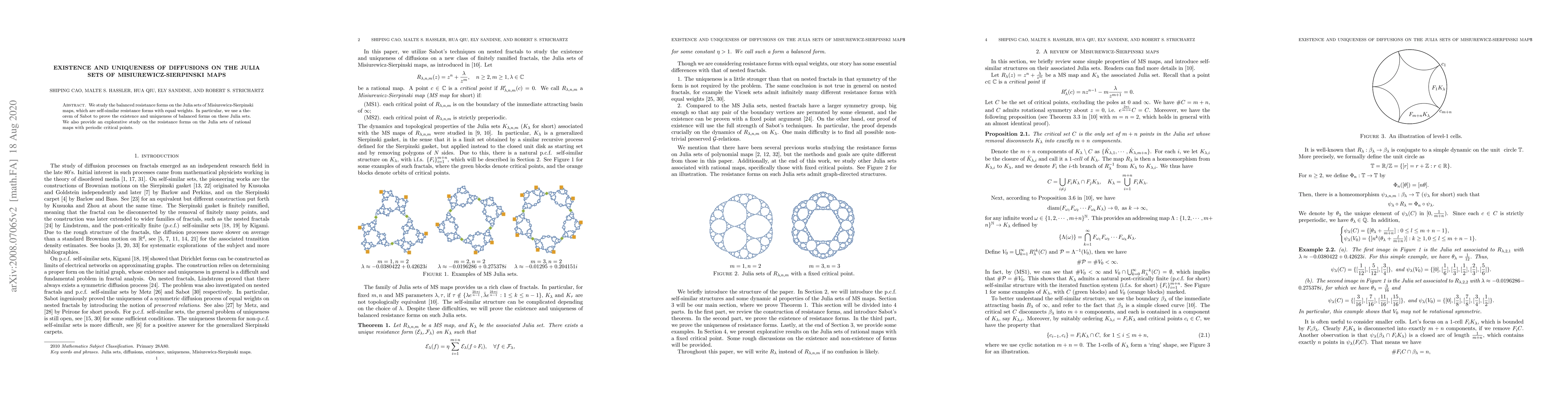 This paper investigates balanced resistance forms on Julia sets of Misiurewicz-Sierpinski maps, proving their existence and uniqueness using Sabot's theorem. It also explores resistance forms on Julia sets of rational maps with periodic critical points.