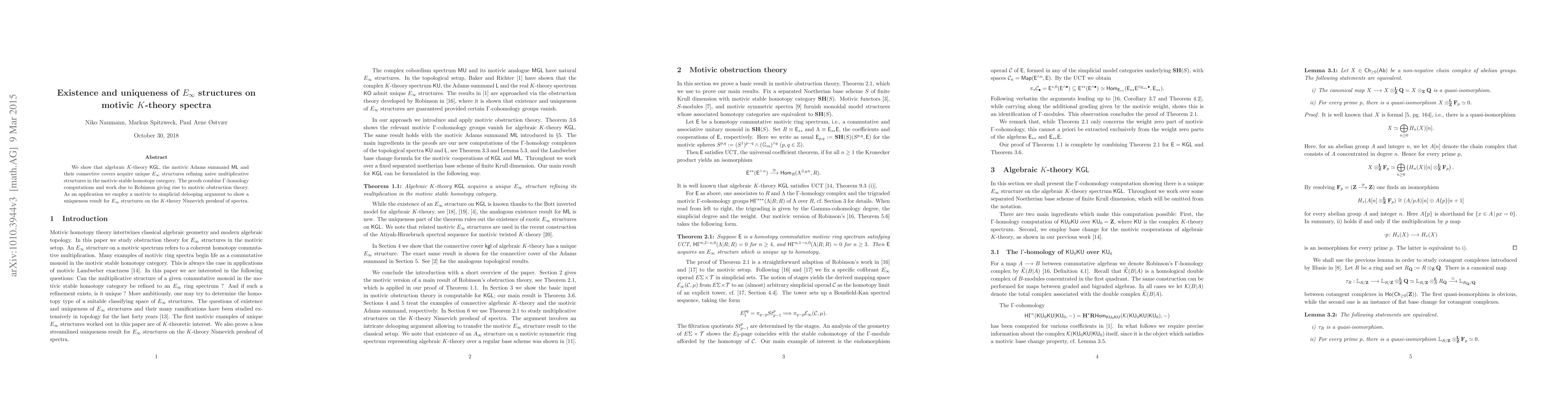 This paper establishes the existence and uniqueness of E-infinity structures on certain algebraic K-theory spectra, using motivic obstruction theory and delooping arguments, showing these structures refine existing multiplicative frameworks. The result extends to the K-theory Nisnevich presheaf of spectra.