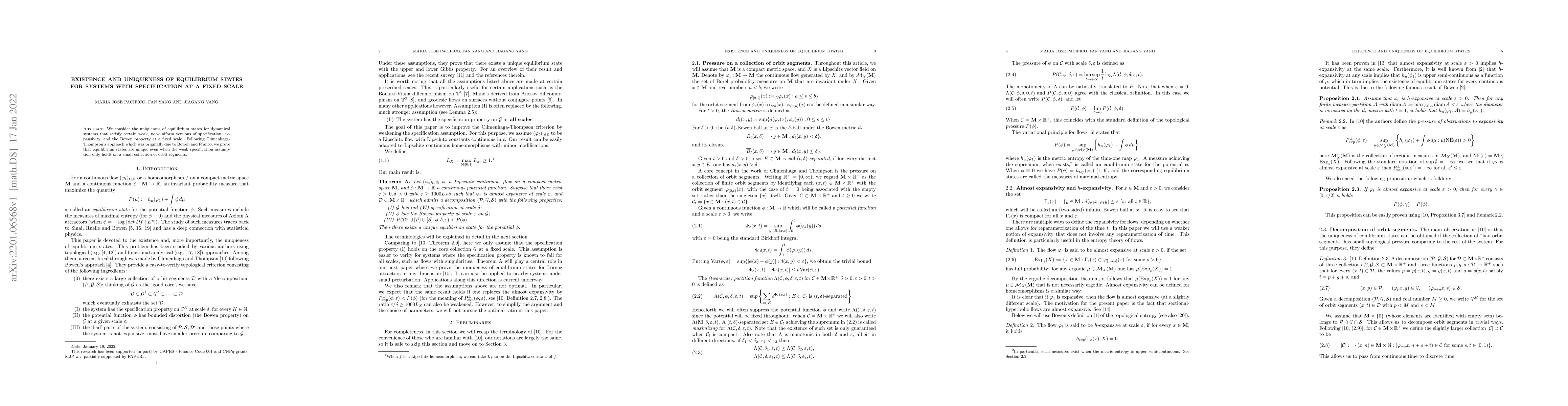 This paper proves the uniqueness of equilibrium states for dynamical systems that satisfy weak specification, expansivity, and the Bowen property at a fixed scale, using a method derived from Bowen and Franco, even when these conditions apply only to a limited subset of orbit segments.