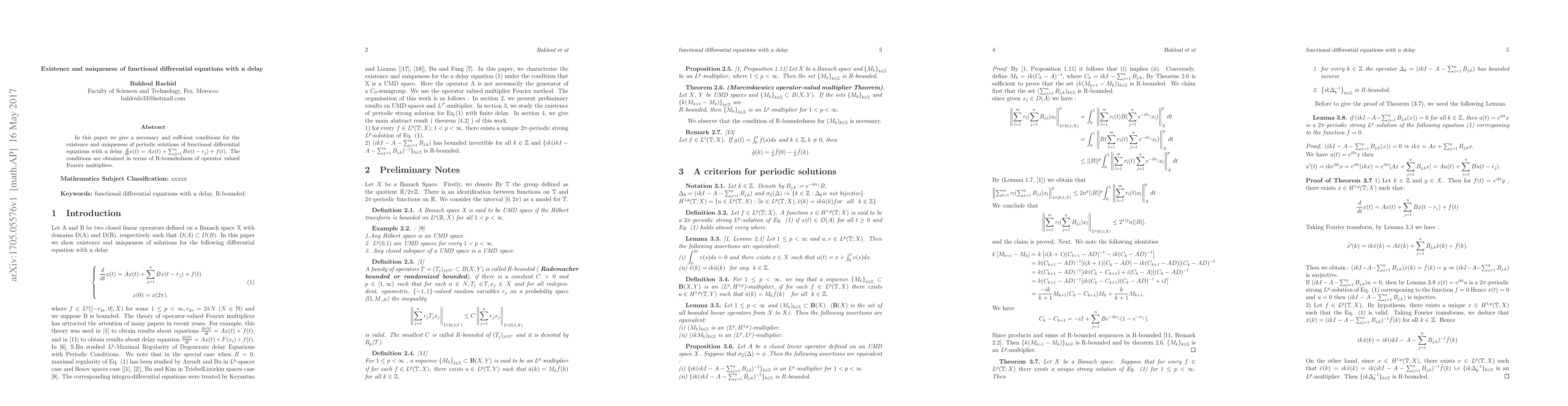 This paper establishes necessary and sufficient conditions for the existence and uniqueness of periodic solutions for functional differential equations with n delays, using R-boundedness of operator valued Fourier multipliers. The results provide a robust framework for analyzing such complex differential equations.