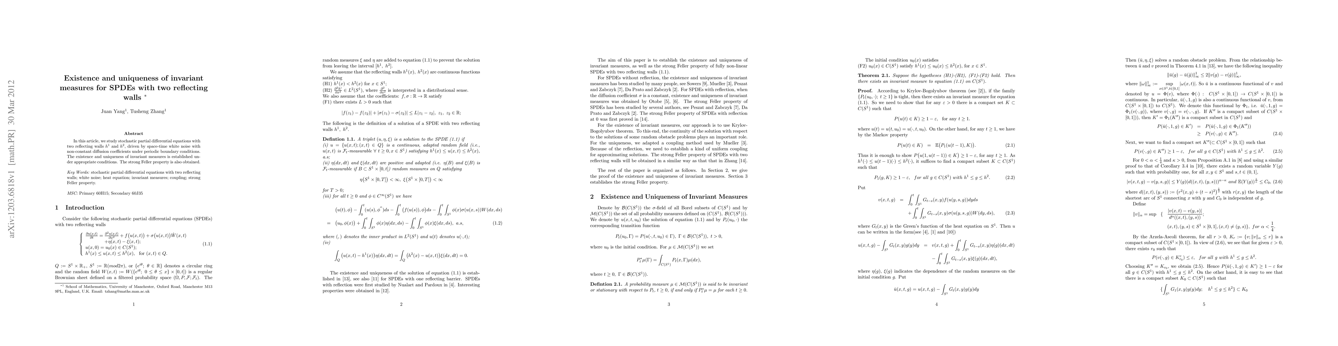 This paper investigates SPDEs with two reflecting walls driven by space-time white noise, establishing the existence and uniqueness of invariant measures under specific conditions, along with the strong Feller property.
