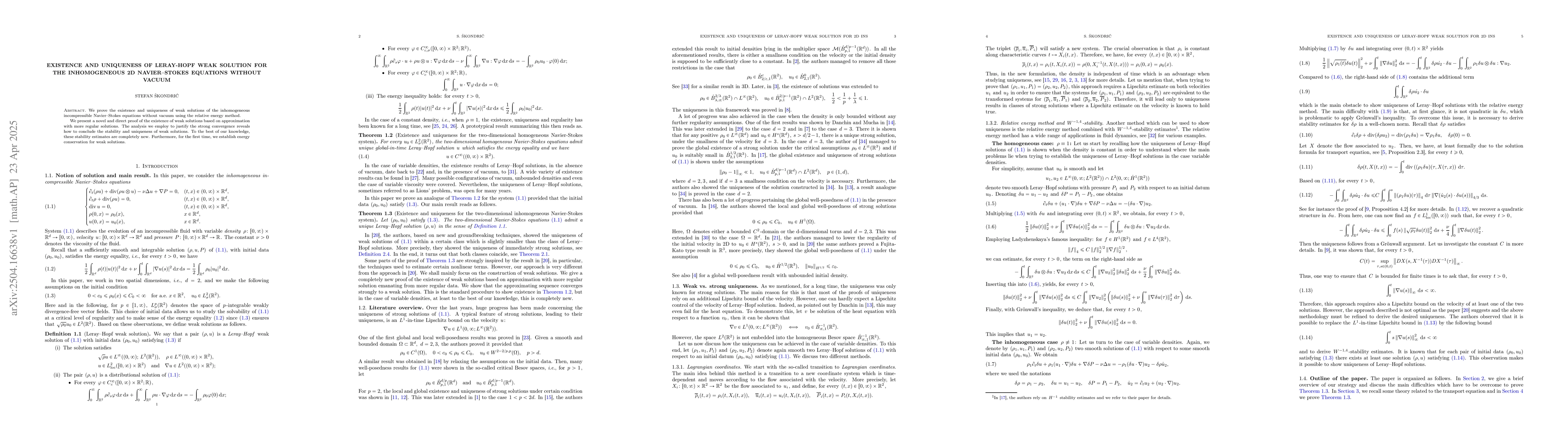 The paper introduces a novel approach using the relative energy method to prove existence, uniqueness, and stability of weak solutions for inhomogeneous 2D Navier-Stokes equations without vacuum, providing new insights into the behavior of fluid systems with variable density.