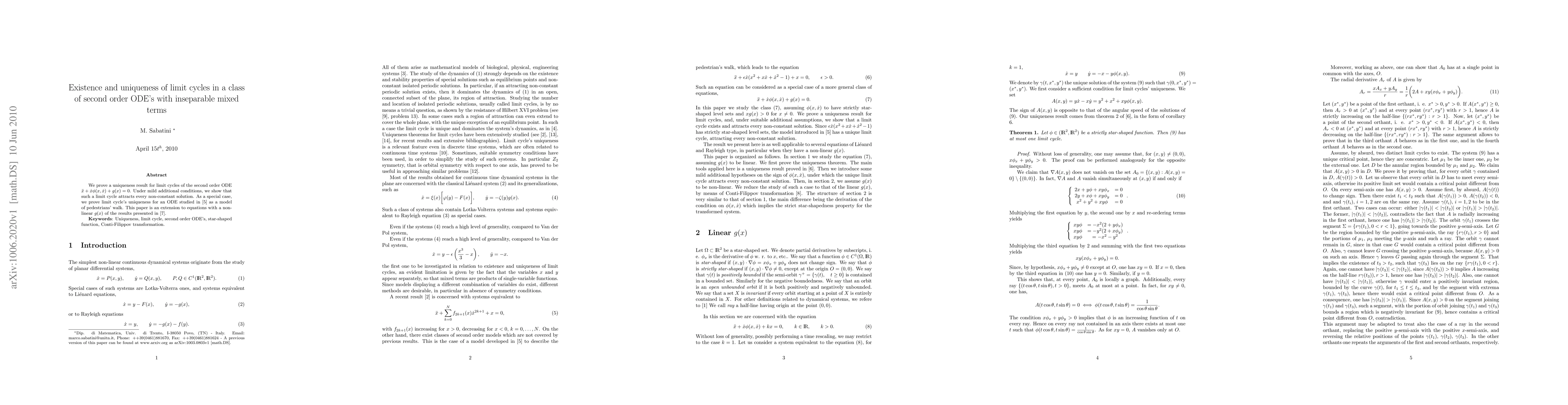 This paper proves the existence and uniqueness of limit cycles for a class of second-order ODEs with inseparable mixed terms, showing that any limit cycle attracts all non-constant solutions under mild conditions. It extends previous results to equations with a non-linear term, including a model of pedestrian dynamics.
