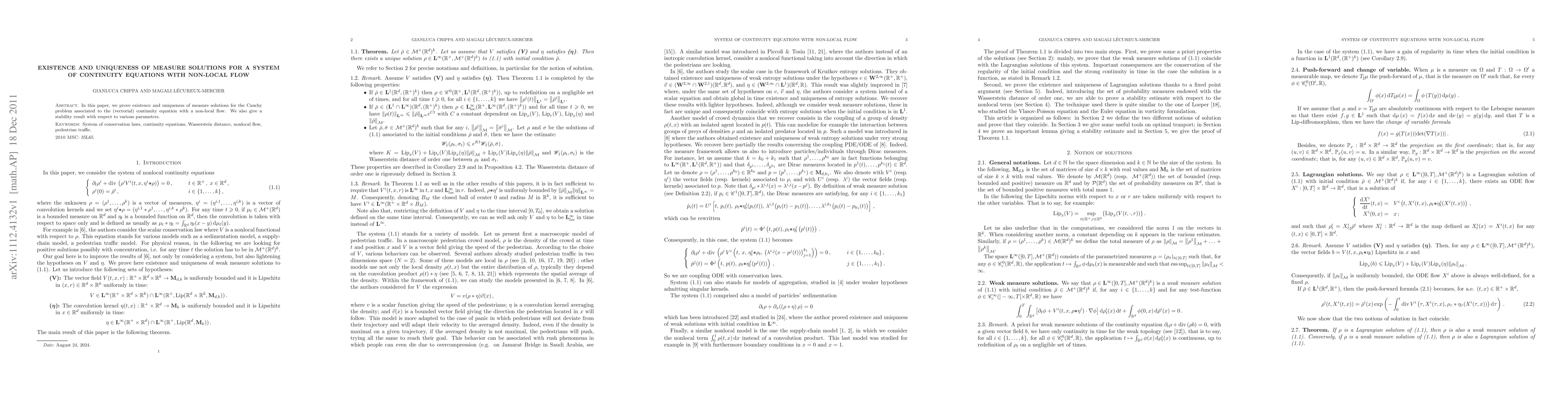 This paper establishes the existence, uniqueness, and stability of measure solutions for a vectorial continuity equation featuring a non-local flow, providing a comprehensive analysis of the Cauchy problem associated with this system.