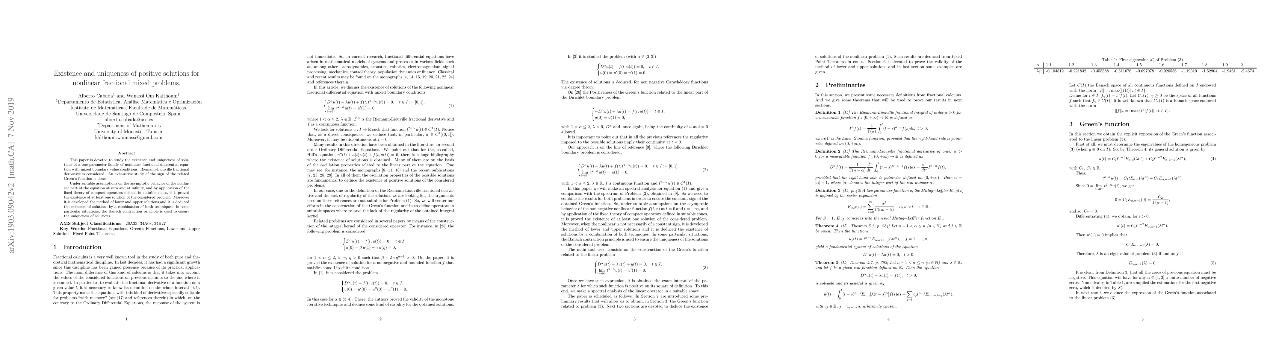 This paper investigates the existence and uniqueness of positive solutions for a nonlinear fractional differential equation with mixed boundary conditions using the Riemann-Liouville fractional derivative. It proves the existence of at least one solution via fixed-point theory and the method of lower and upper solutions, while ensuring uniqueness in specific cases through the Banach contraction principle.