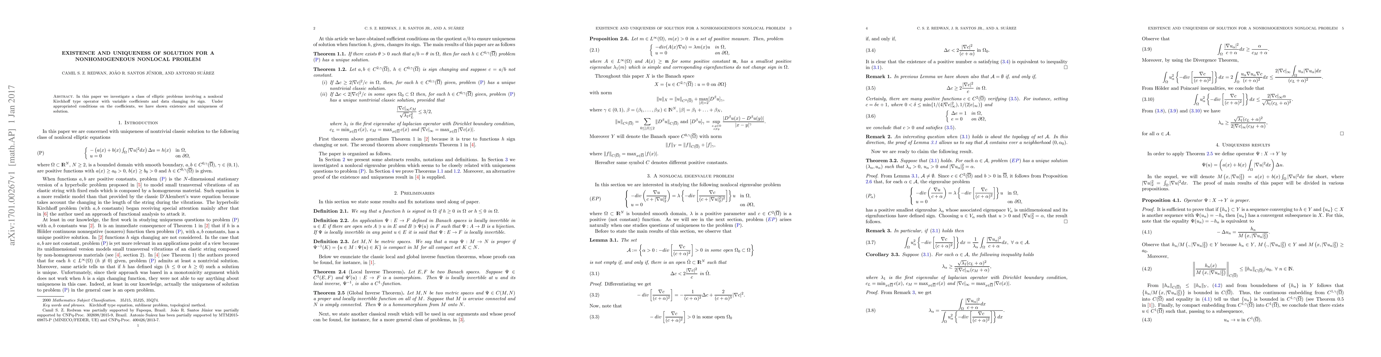 Summary: This paper explores elliptic problems with a nonlocal Kirchhoff operator featuring variable coefficients and sign-changing data. It establishes the existence and uniqueness of solutions under specific coefficient conditions.