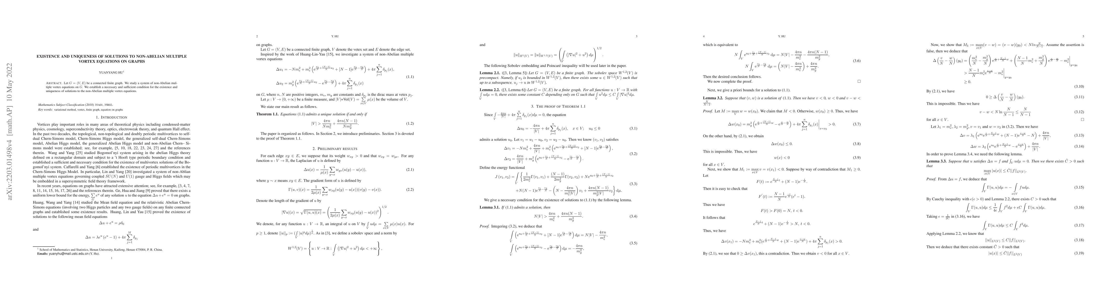 This paper investigates whether solutions to non-Abelian multiple vortex equations on graphs exist and are unique, establishing a necessary condition for existence and uniqueness.