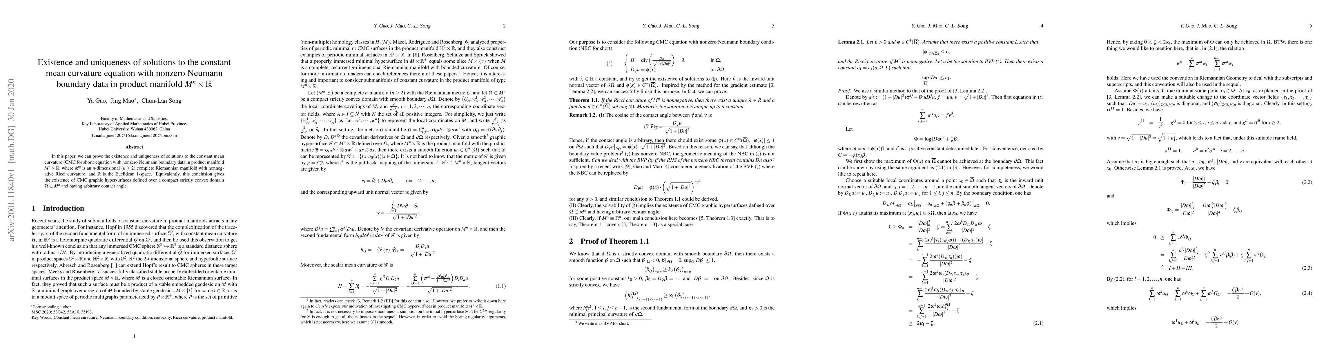 In this paper, we can prove the existence and uniqueness of solutions to the constant mean curvature (CMC for short) equation with nonzero Neumann boundary data in product manifold $M^{n}\times\mathbb{R}$, where $M^{n}$ is an $n$-dimensional ($n\geq2$) complete Riemannian manifold with nonnegative Ricci curvature, and $\mathbb{R}$ is the Euclidean $1$-space. Equivalently, this conclusion gives the existence of CMC graphic hypersurfaces defined over a compact strictly convex domain $\Omega\subset M^{n}$ and having arbitrary contact angle.