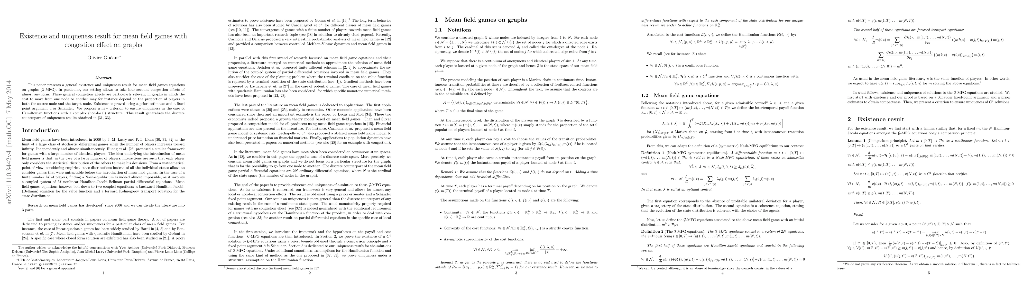 This paper proves a general existence and uniqueness result for mean field games on graphs, allowing for congestion effects of various forms, and provides a new criterion to ensure uniqueness in cases with complex structure.