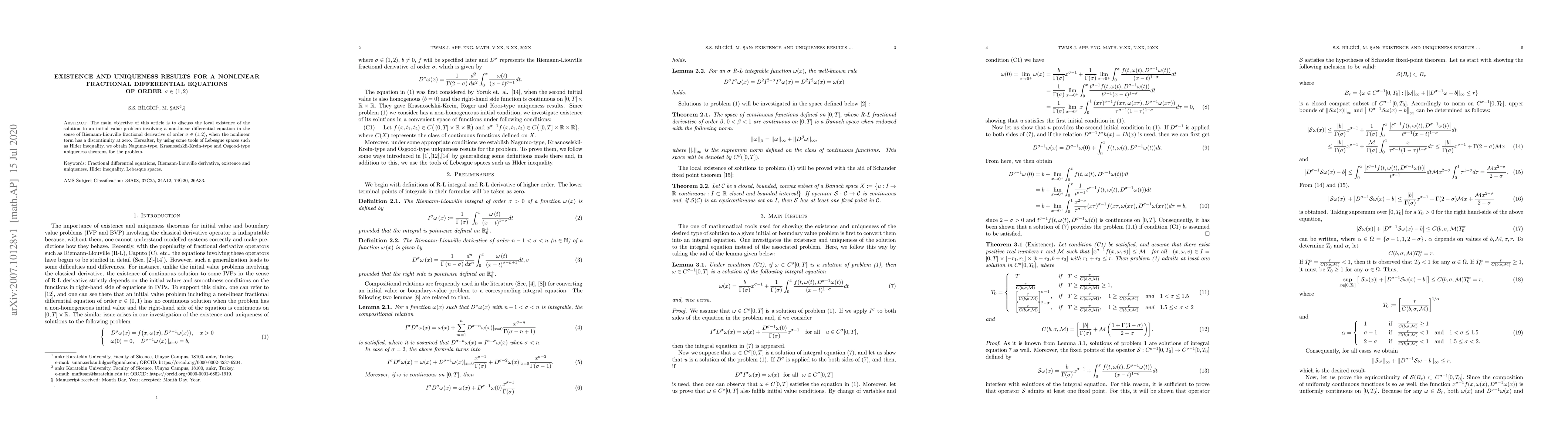 The main objective of this article is to discuss the local existence of the solution to an initial value problem involving a non-linear differential equation in the sense of Riemann-Liouville fractional derivative of order $\sigma\in(1,2),$ when the nonlinear term has a discontinuity at zero. Hereafter, by using some tools of Lebesgue spaces such as H\"older inequality, we obtain Nagumo-type, Krasnoselskii-Krein-type and Osgood-type uniqueness theorems for the problem.
