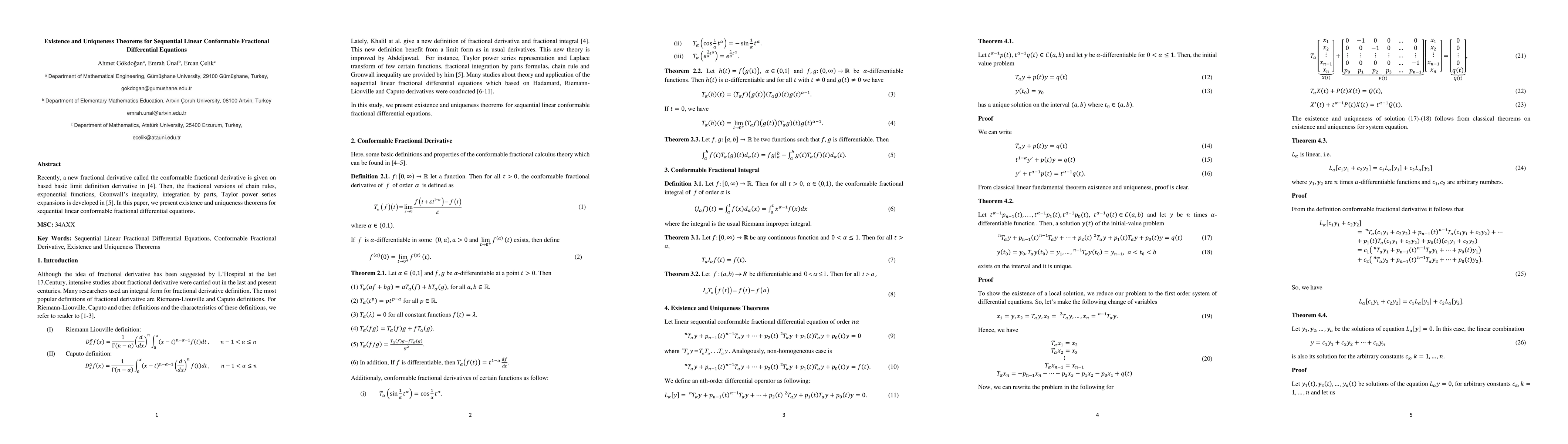 This paper presents existence and uniqueness theorems for sequential linear conformable fractional differential equations, building on the foundational work of conformable fractional derivatives and associated mathematical tools.