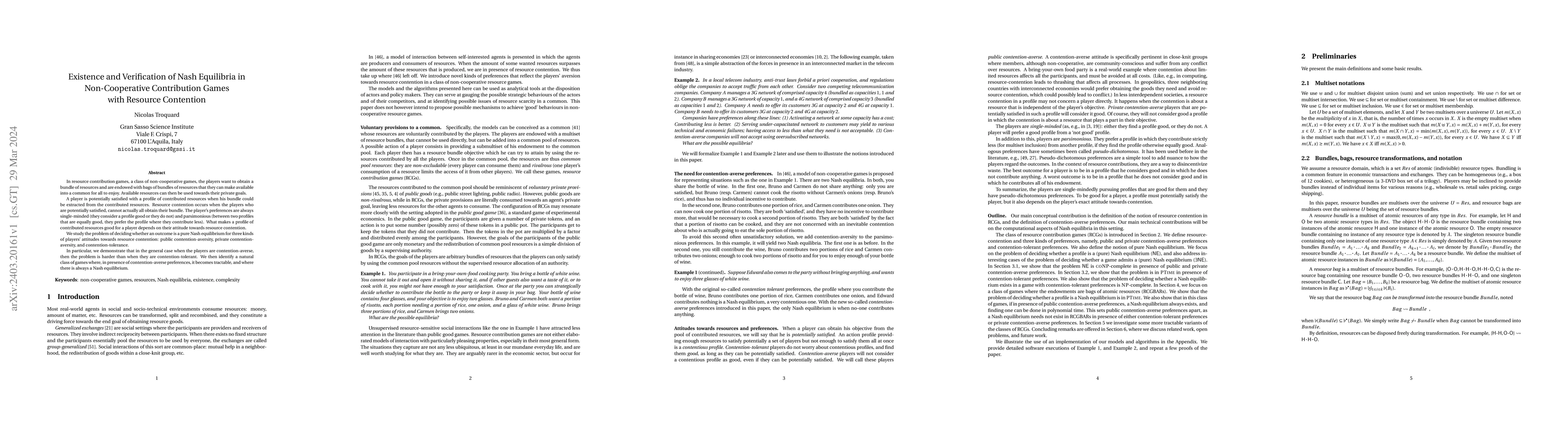 In resource contribution games, a class of non-cooperative games, the players want to obtain a bundle of resources and are endowed with bags of bundles of resources that they can make available into a common for all to enjoy. Available resources can then be used towards their private goals. A player is potentially satisfied with a profile of contributed resources when his bundle could be extracted from the contributed resources. Resource contention occurs when the players who are potentially satisfied, cannot actually all obtain their bundle. The player's preferences are always single-minded (they consider a profile good or they do not) and parsimonious (between two profiles that are equally good, they prefer the profile where they contribute less). What makes a profile of contributed resources good for a player depends on their attitude towards resource contention. We study the problem of deciding whether an outcome is a pure Nash equilibrium for three kinds of players' attitudes towards resource contention: public contention-aversity, private contention-aversity, and contention-tolerance. In particular, we demonstrate that in the general case when the players are contention-averse, then the problem is harder than when they are contention-tolerant. We then identify a natural class of games where, in presence of contention-averse preferences, it becomes tractable, and where there is always a Nash equilibrium.