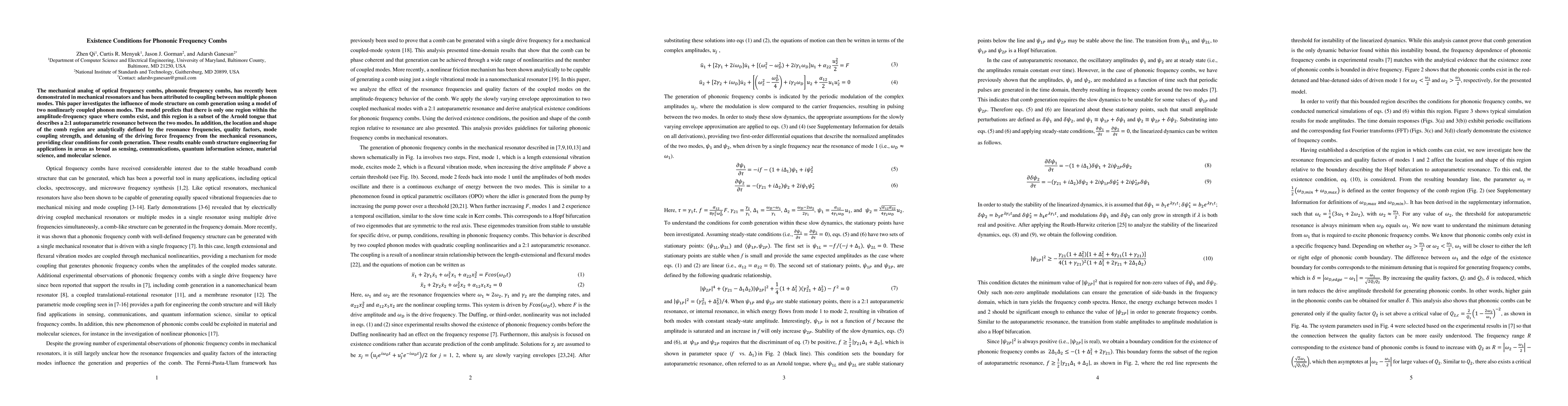 This paper investigates the conditions for generating phononic frequency combs in mechanical resonators, finding that combs exist within a specific region of the amplitude-frequency space defined by resonance frequencies, quality factors, and mode coupling. The results provide clear analytical conditions for comb generation, enabling engineering of comb structures for various applications.