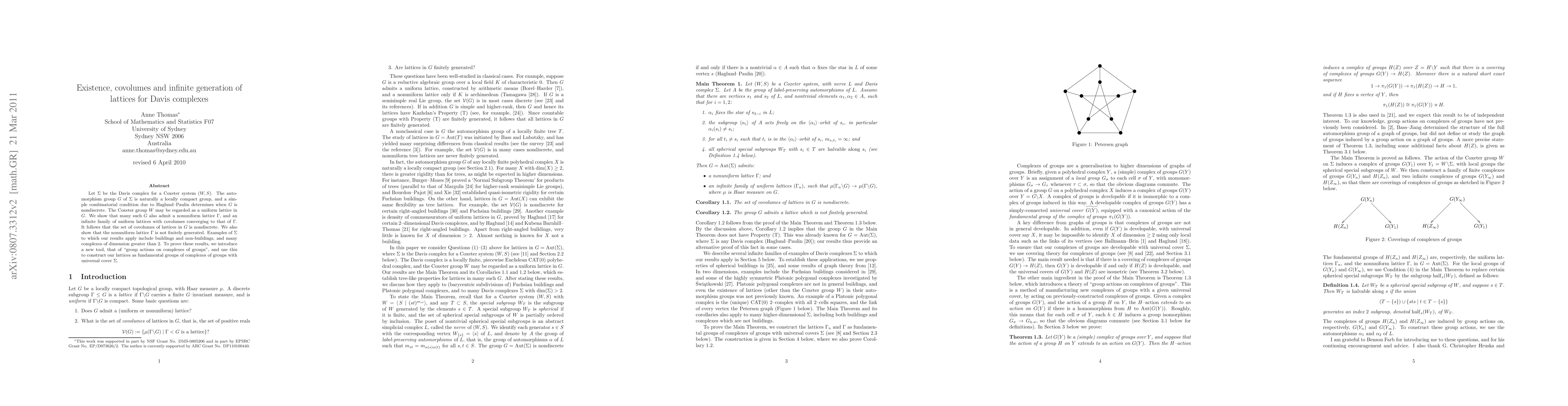 This paper explores the automorphism groups of Davis complexes associated with Coxeter systems, demonstrating the existence of nonuniform lattices and infinite families of uniform lattices with covolumes converging to that of a nonuniform lattice. It proves the infinite generation of the nonuniform lattice and introduces a new tool, "group actions on complexes of groups," for constructing these lattices.