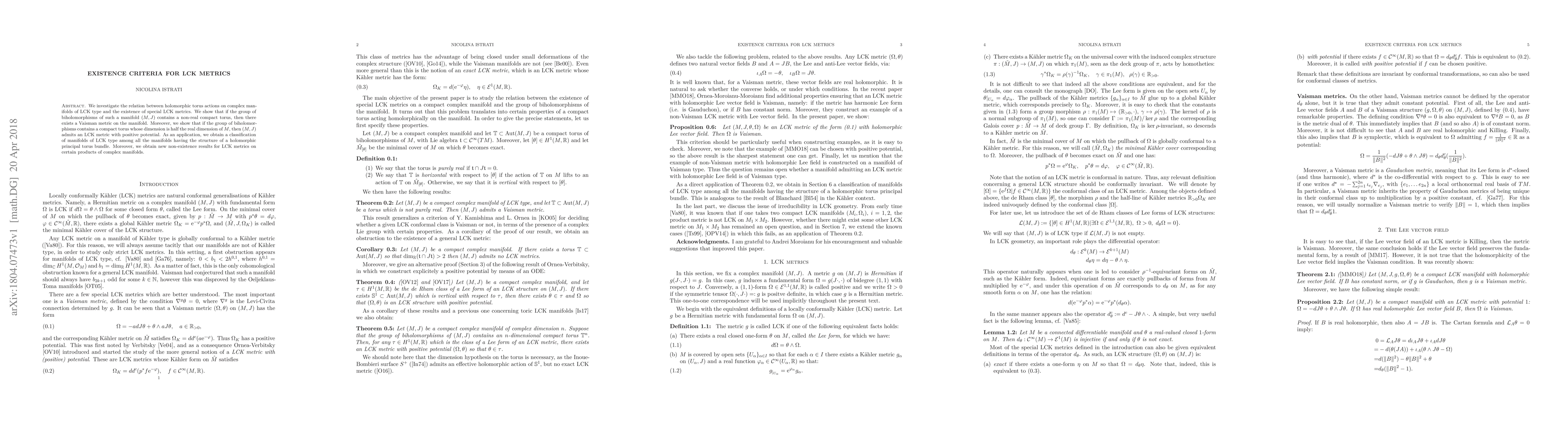 The paper explores the existence criteria for LCK metrics in complex manifolds with holomorphic torus actions, proving the existence of Vaisman metrics and LCK metrics with positive potential under specific conditions. It also classifies LCK manifolds among holomorphic principal torus bundles and derives new non-existence results for LCK metrics on certain product manifolds.