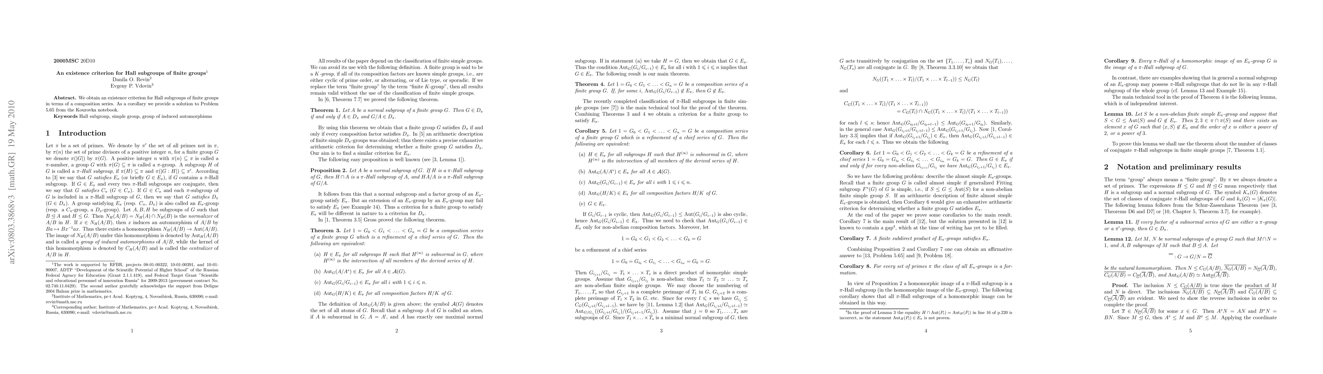 Researchers found an existence criterion for Hall subgroups of finite groups using a composition series, providing a new approach to understanding these subgroups in terms of their structure.