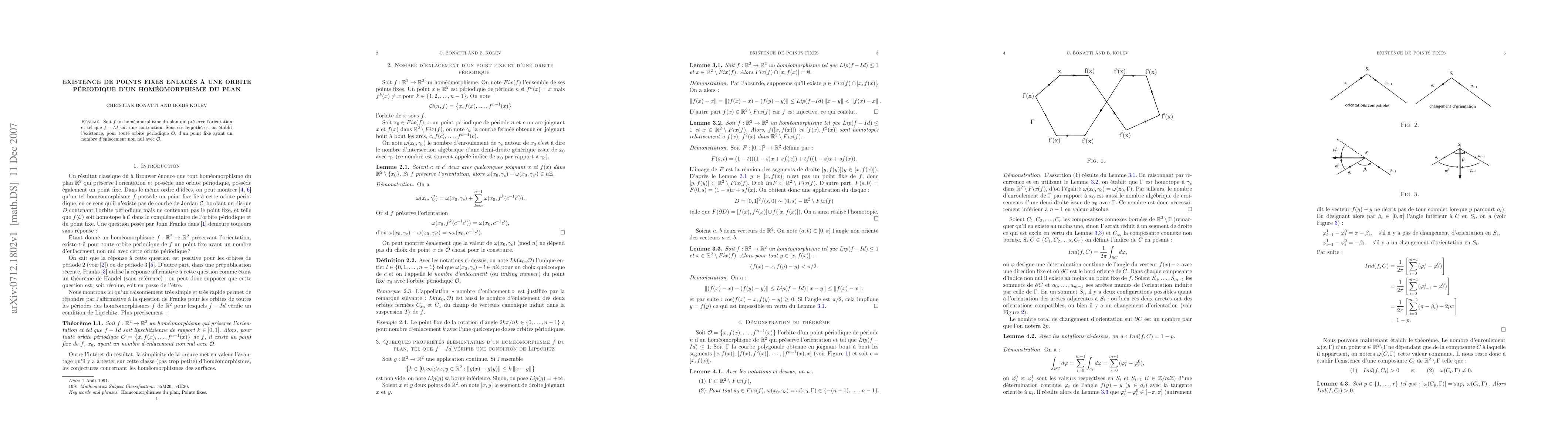 Let f be an orientation-preserving homeomorphism of the plane such that f-Id is contracting. Under these hypotheses, we establish the existence, for every periodic orbit, of a fixed point which has nonzero linking number with this periodic orbit.